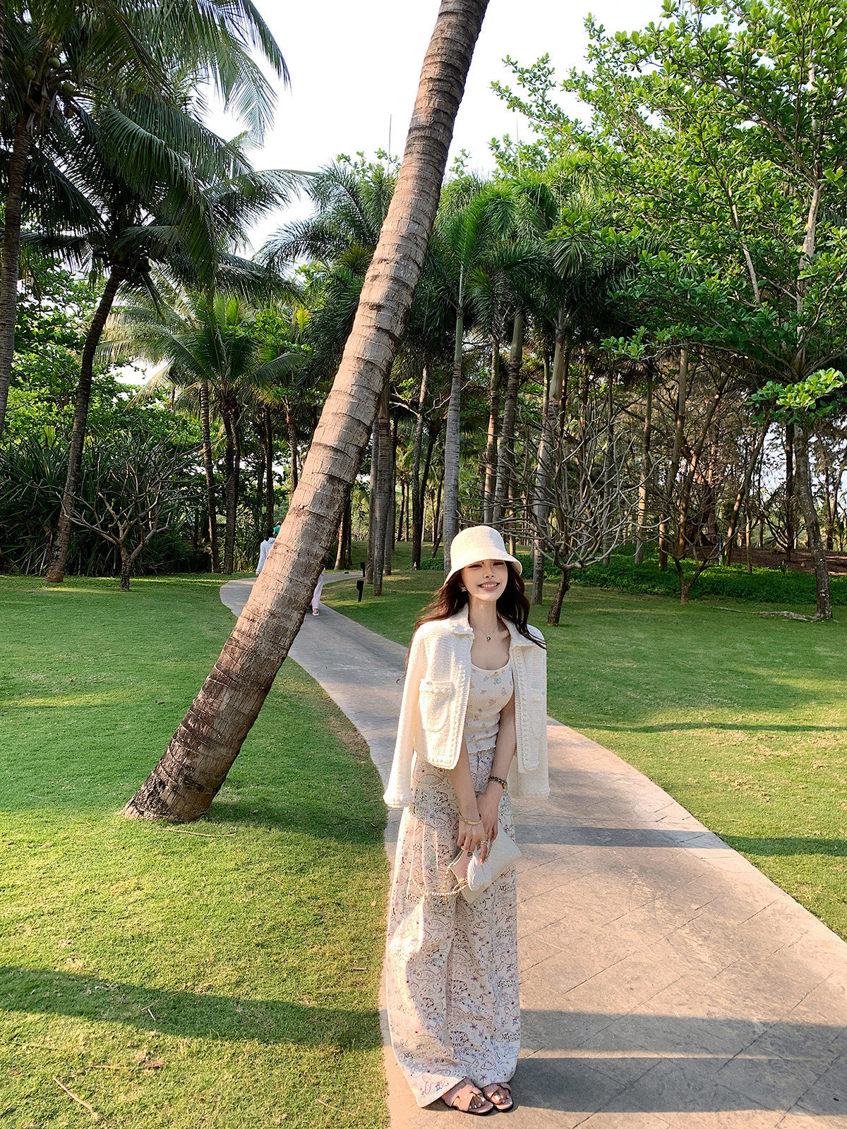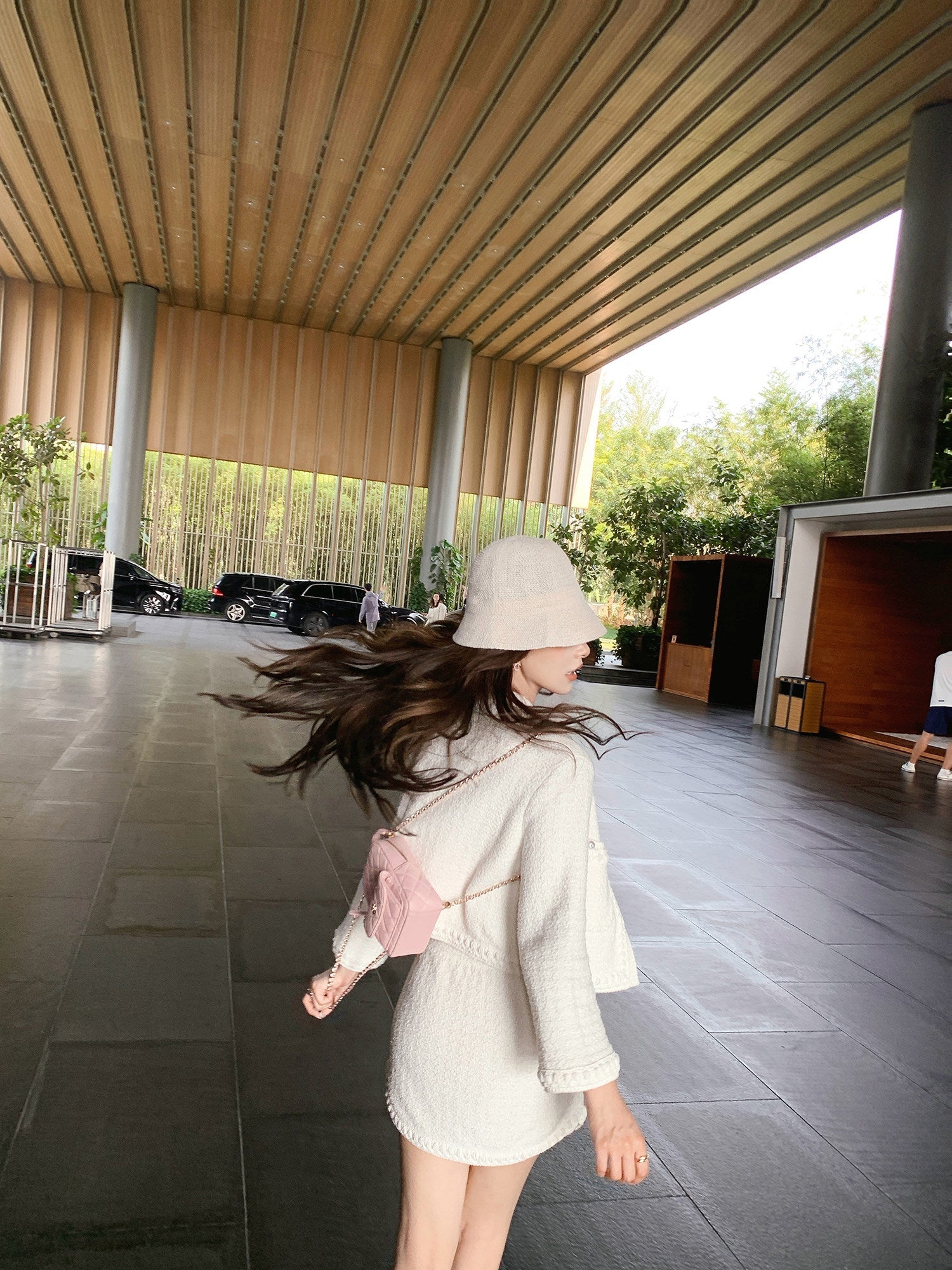 上品な表情を纏う、ホワイトツイードのセットアップ。