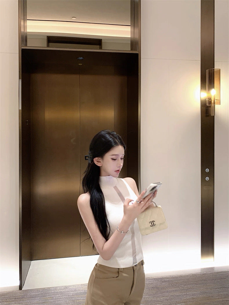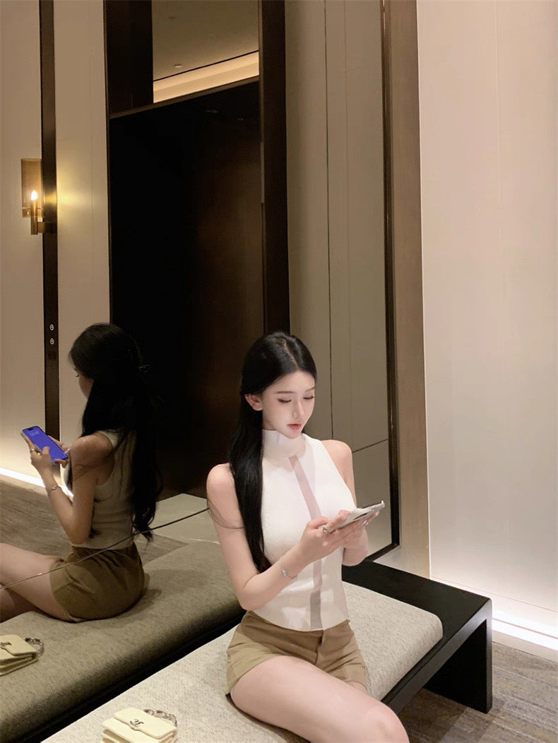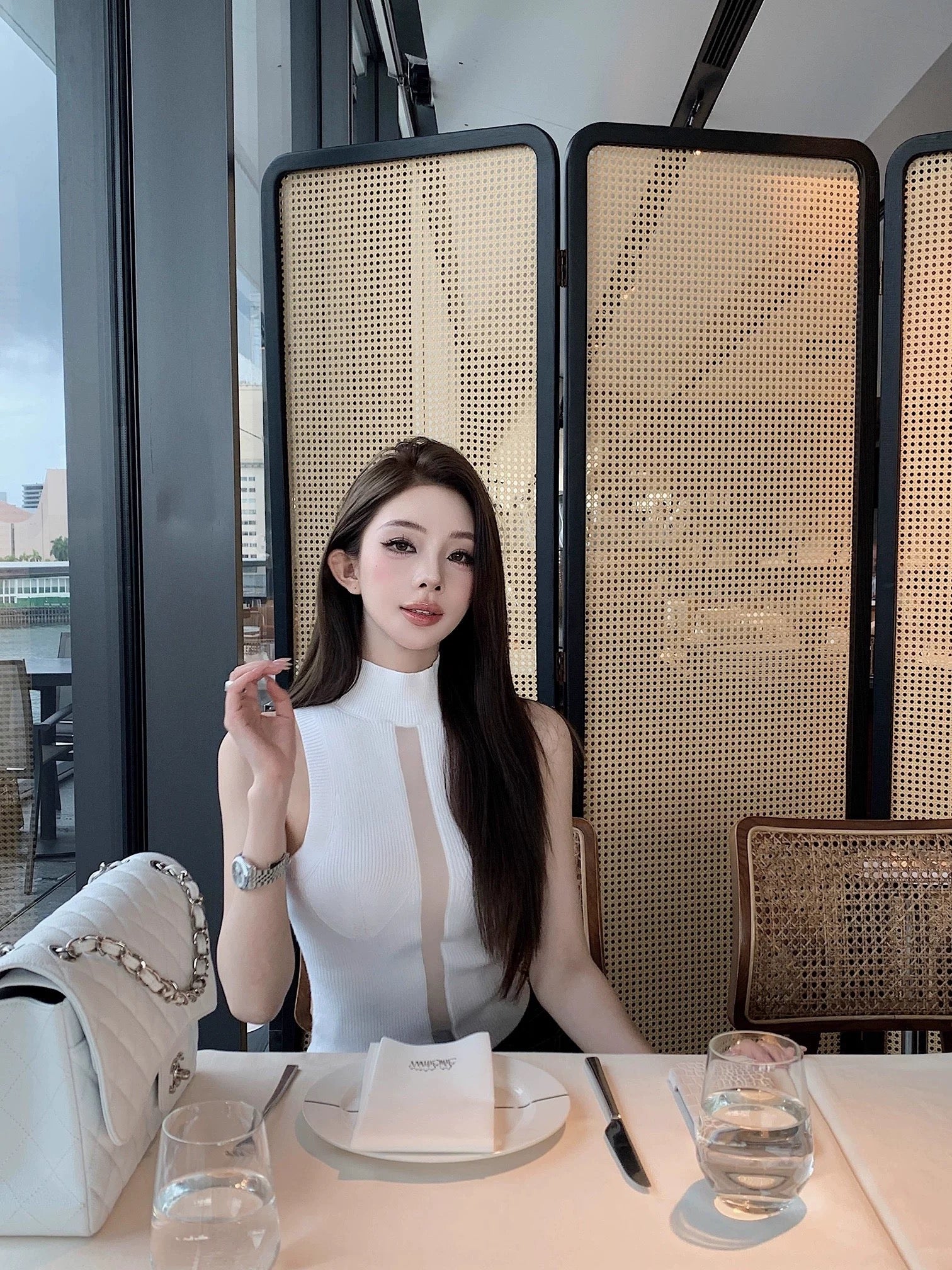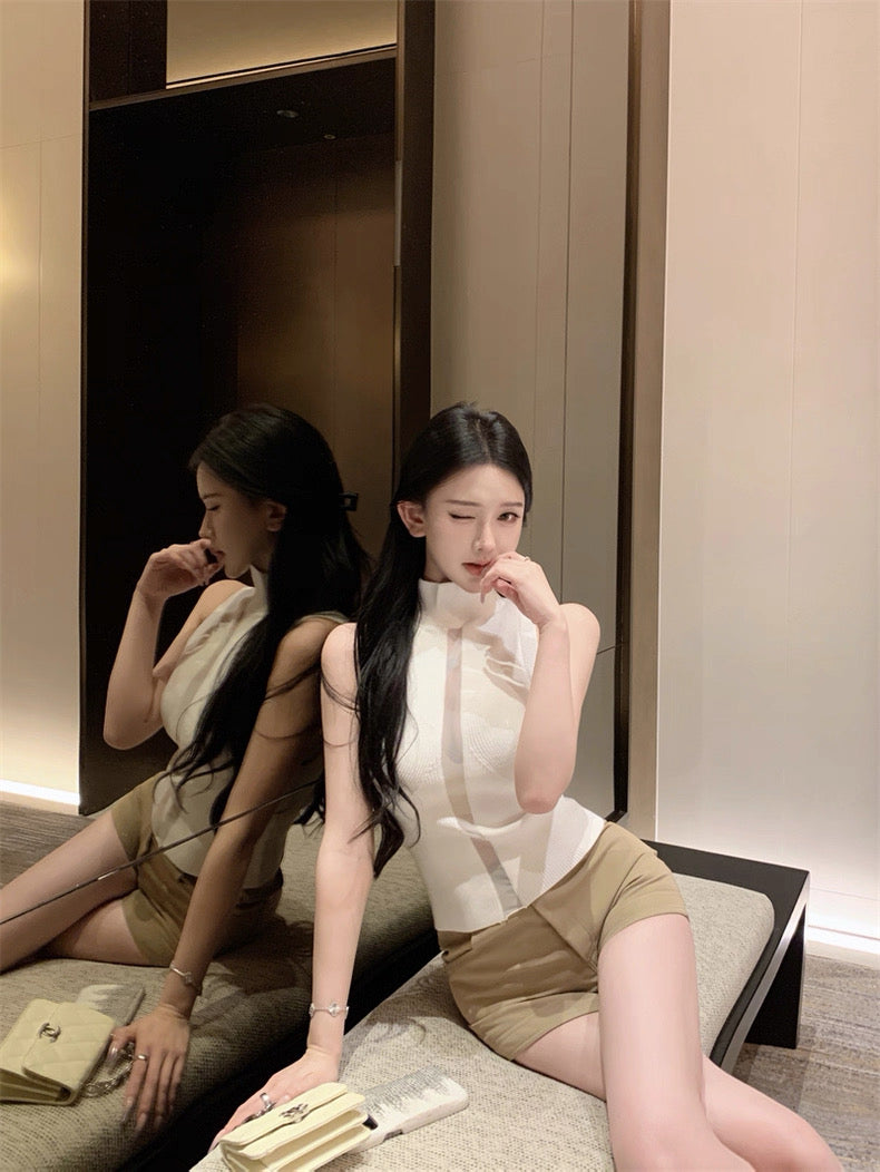 ハイネックで上品さをキープしながら、