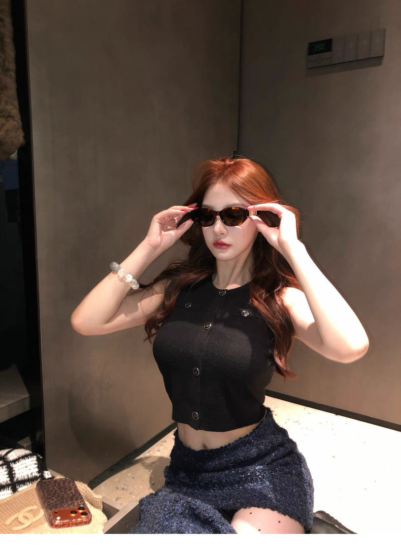 Black Button Curve Tank