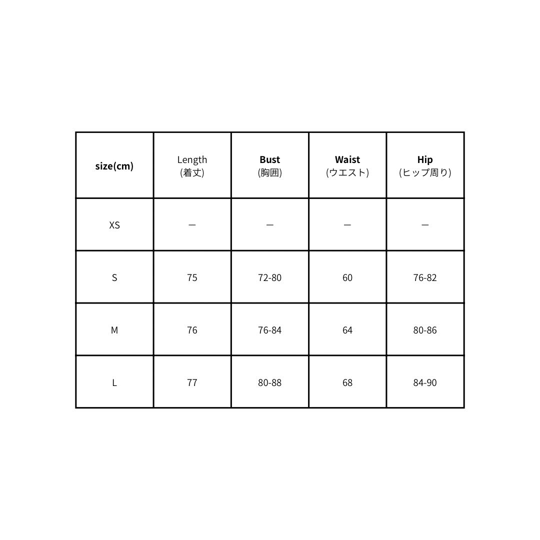 S 着丈75胸囲72-80ウエスト60ヒップ76-82