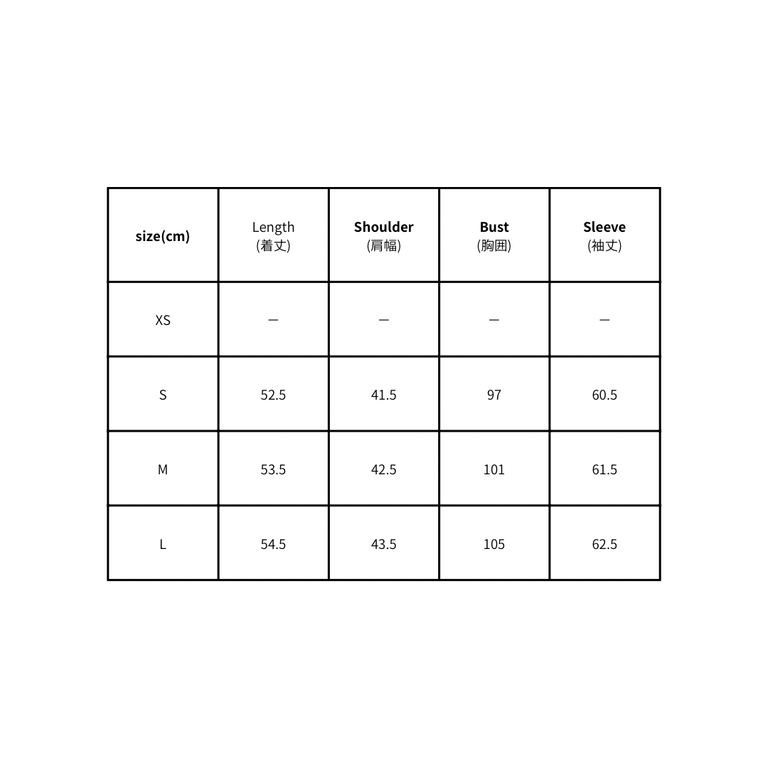 S 着丈52.5肩幅41.5胸囲97袖丈60.5