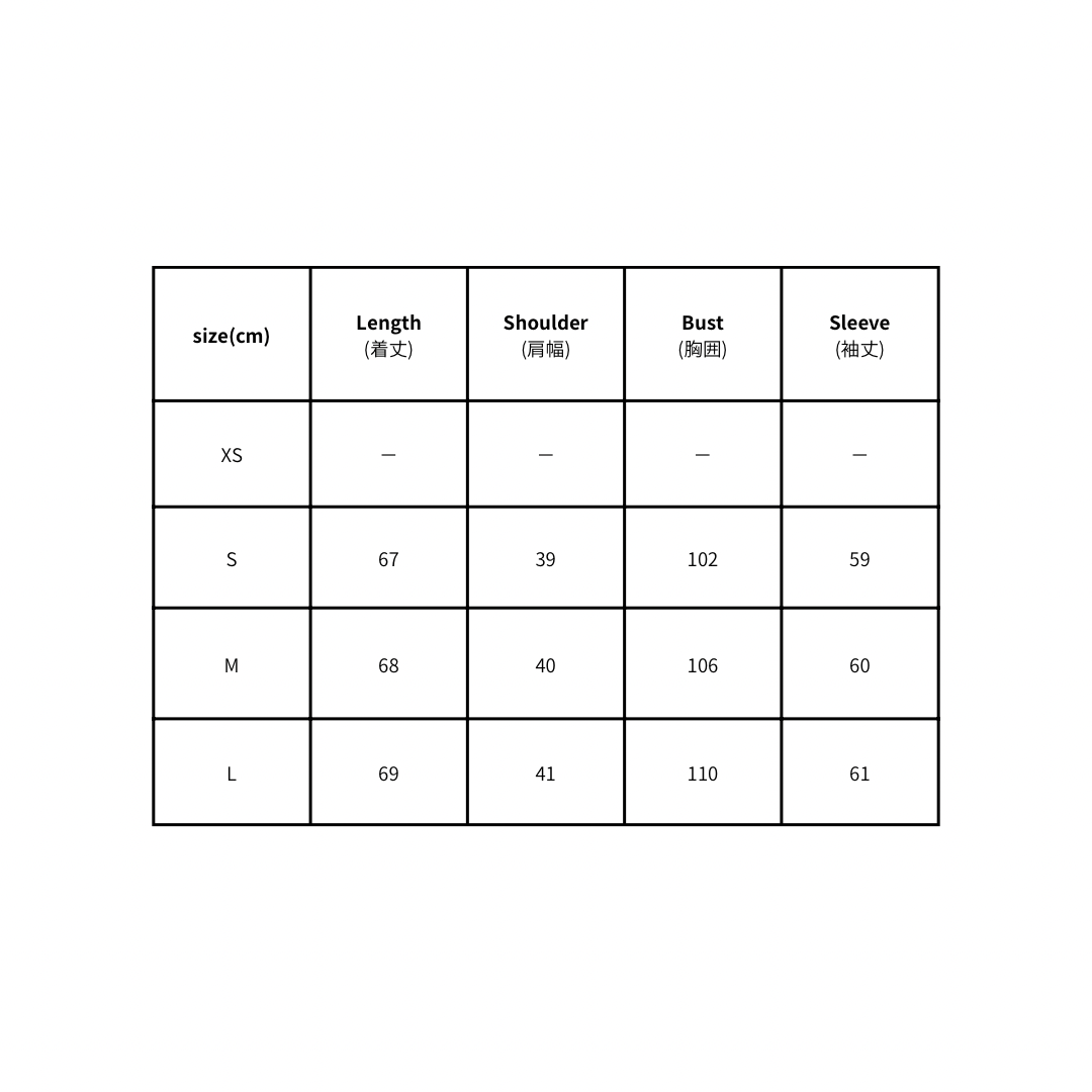 S 着丈67肩幅39胸囲102袖丈59