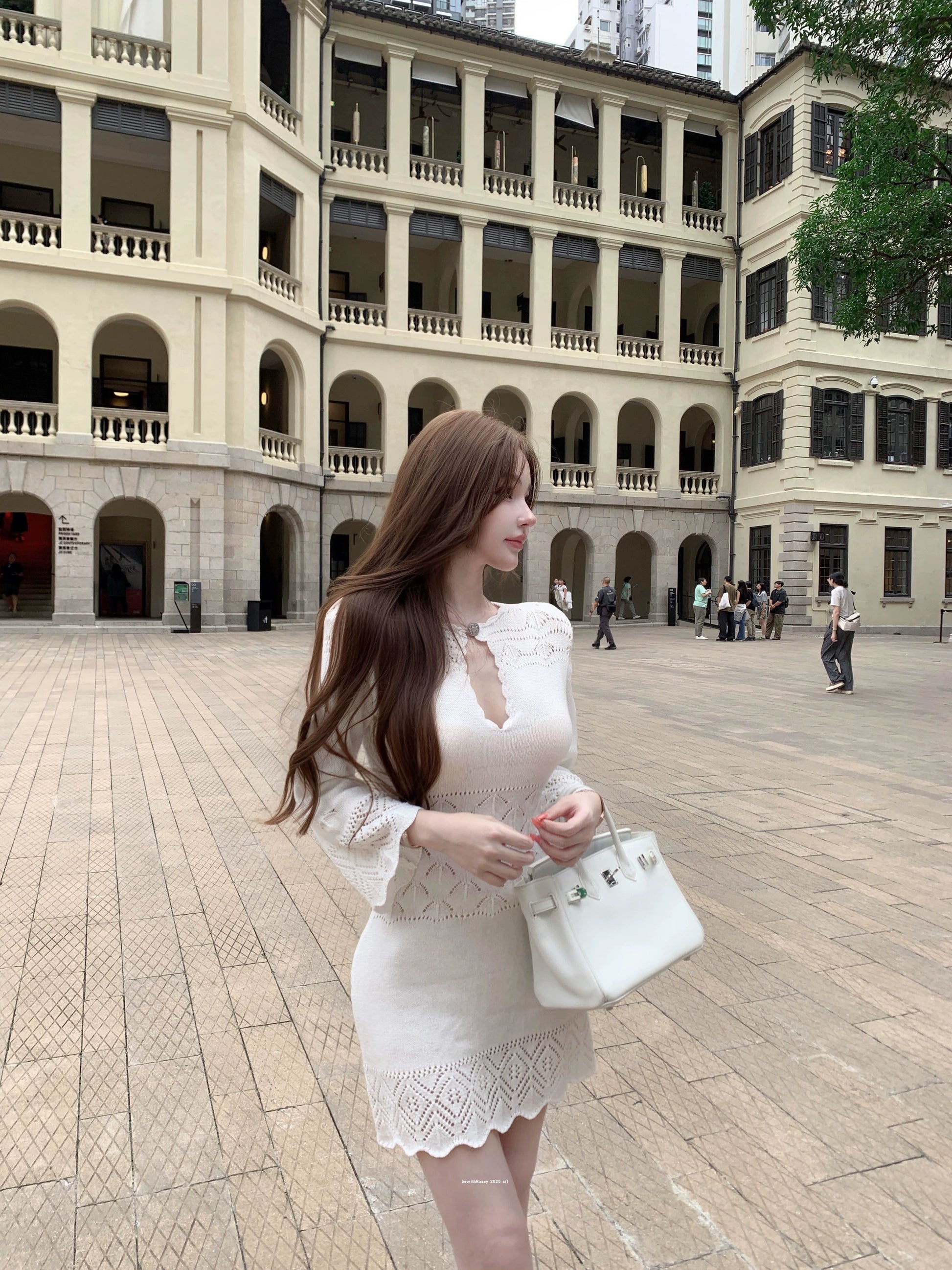 透かし編みの優しい透け感と、柔らかなシルエットが
