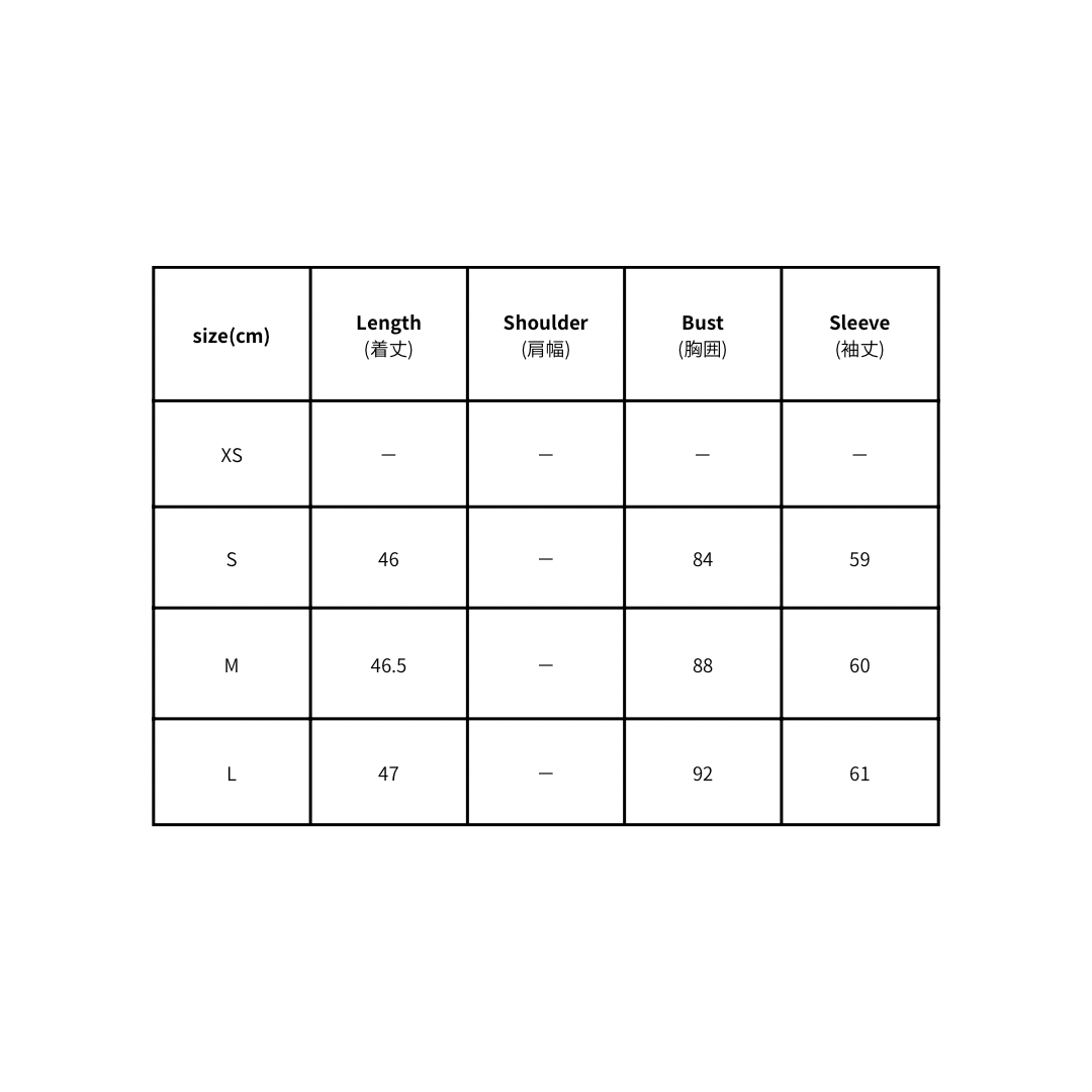 L着丈47肩幅-胸囲92袖丈61