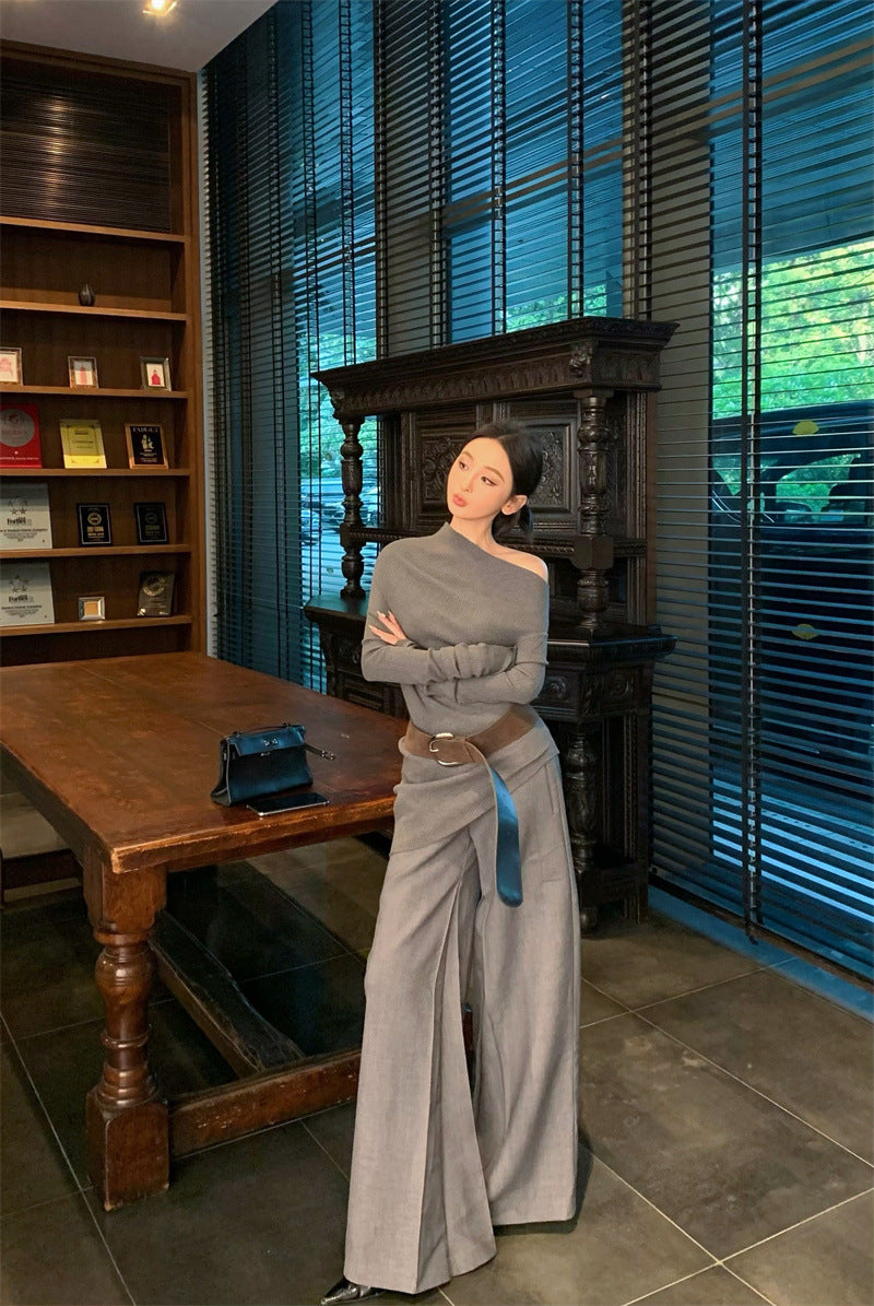しなやかなオフショルダーラインが鎖骨を美しく映し、