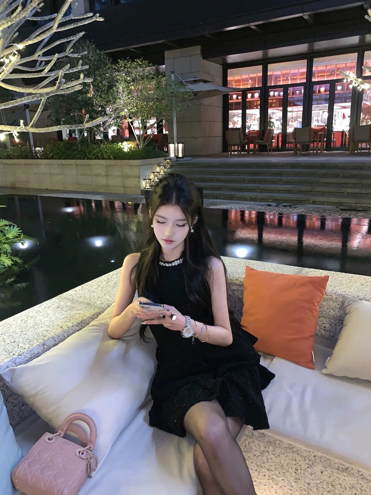 夜のムードに溶け込みながらも美しく際立つ一着。