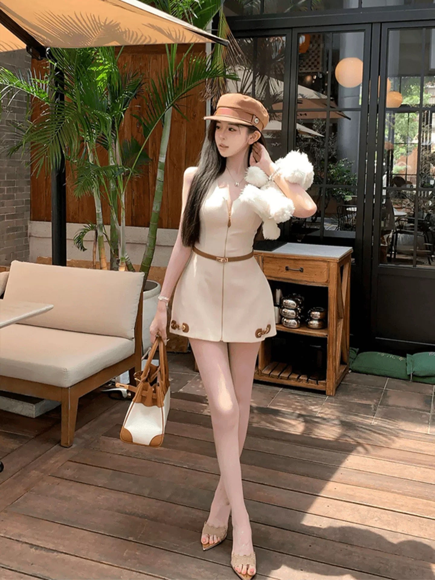 ゴールドのジップが上品なアクセントを添えるドレス。