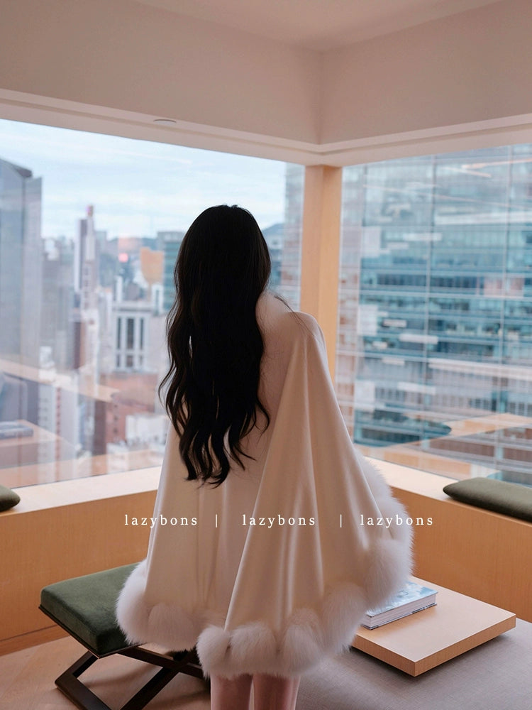 天上の輝きを纏うような「Celestial Fur Cape」。
