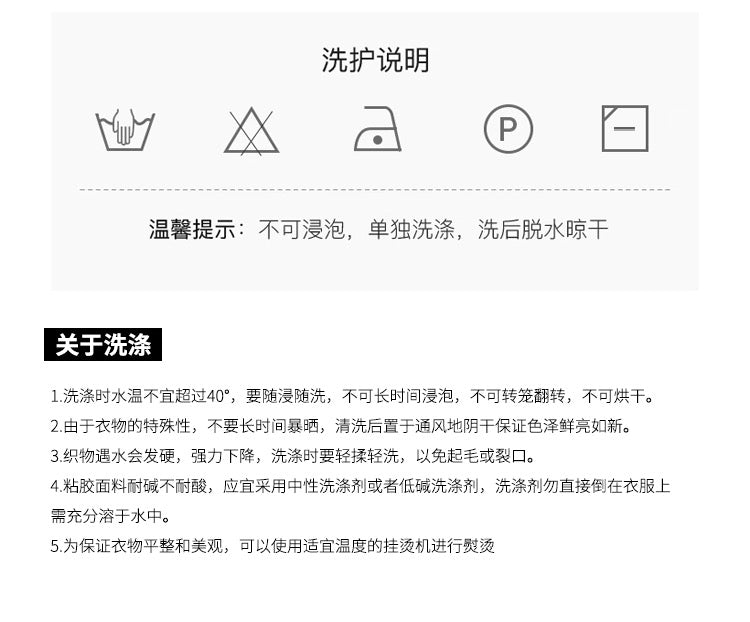 洗濯方法: 単独でやさしく手洗いし、長時間のつけ置きは避けてください。